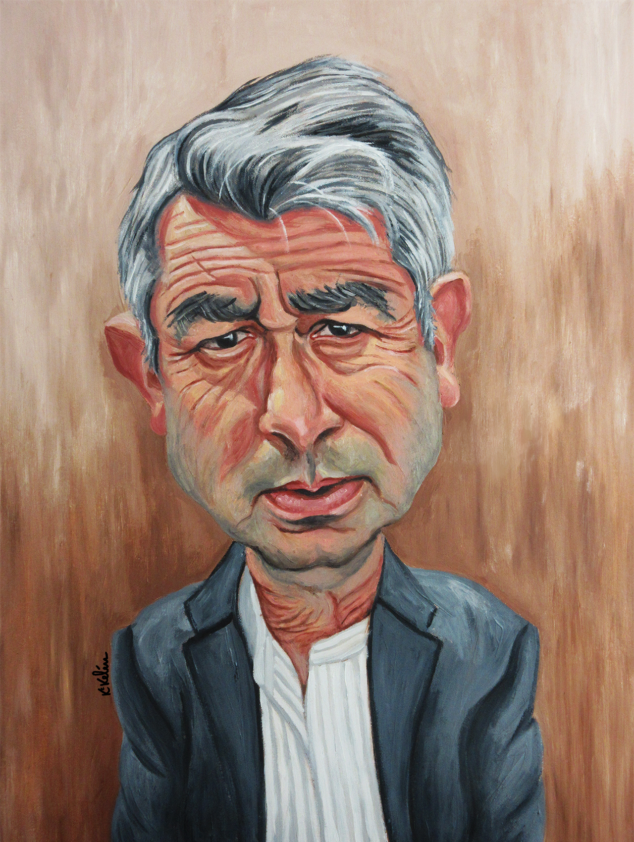 El pasado sábado presentó su último libro, el “Nuevo diccionario de la resistencia (profusamente ilustrado)” en Altura, acompañado por un buen número de amigos pese a las inclemencias meteorológicas y en el que he participado con esta caricatura al óleo y su boceto previo.